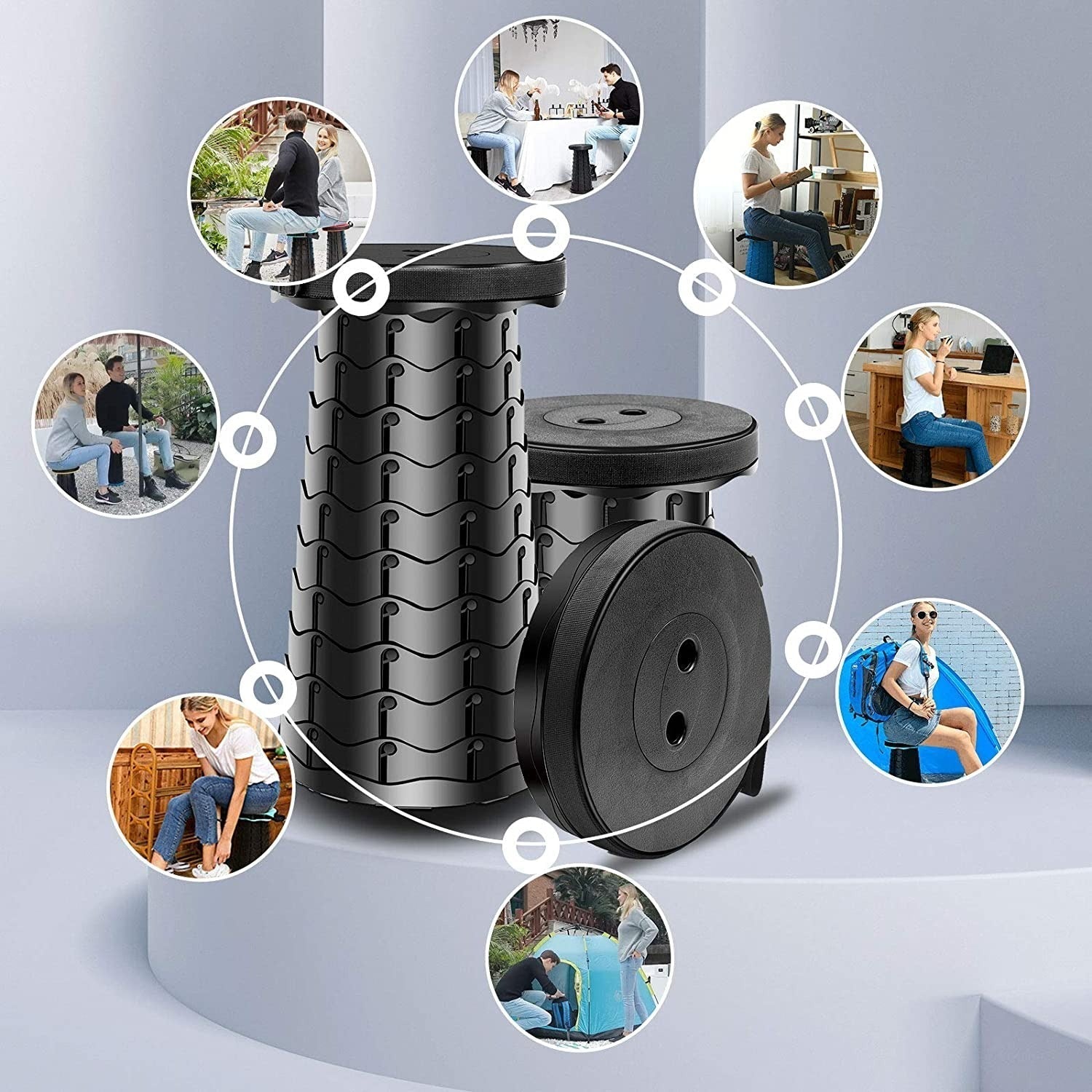 This retractable folding stool is compact, portable, and height-adjustable — perfect for camping, travel, fishing, hiking, gardening, or extra seating on the go. Its lightweight telescoping design makes it easy to carry, store, and set up anywhere.
